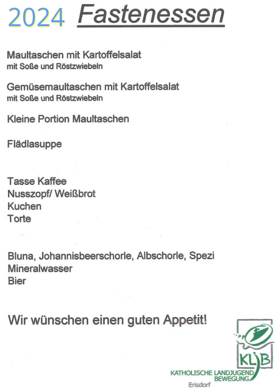 Fastenessen der KLJB Erisdorf im Dorfgemeinschaftshaus.
